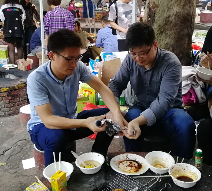 男同事負(fù)責(zé)烤,女同事負(fù)責(zé)吃,分工十分完美