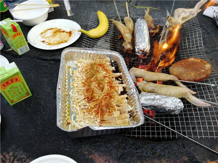燒烤進(jìn)行時(shí),香噴噴的雞翅、熱狗、秋刀魚......口水都要流下來了