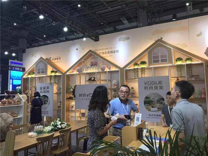 時(shí)尚貨架工作人員為參展觀眾做介紹