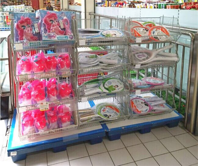 并不是所有商品都適合直接擺放在超市貨架的層板上,有些商品需要懸掛陳列,這時(shí)就需要給超市貨架配置掛鉤。