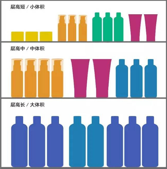 超市貨架上層擺放小體積商品;中層擺放常規(guī)體積商品;下層則擺放大體積商品,按照這種擺放方式,能讓商品展示效果更井然有序,方便顧客按需選購(gòu)。