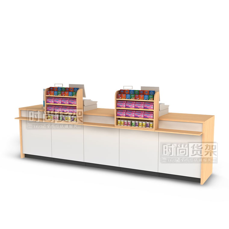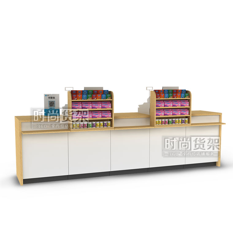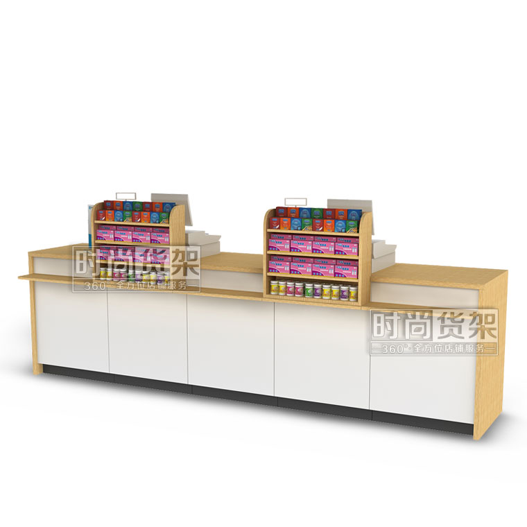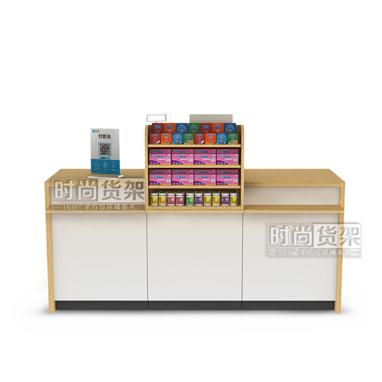 - 產(chǎn)品描述:這是時(shí)尚貨架為藥店收銀區(qū)最新推出的一款白色橡木藥店收銀柜臺(tái)。