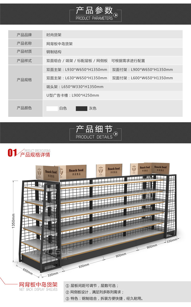 【產(chǎn)品名稱】便利店網(wǎng)背板中島貨架/進(jìn)口食品貨架/網(wǎng)背板零食貨架