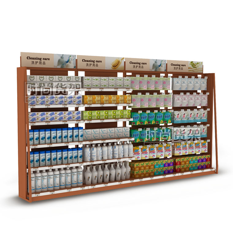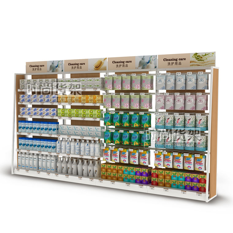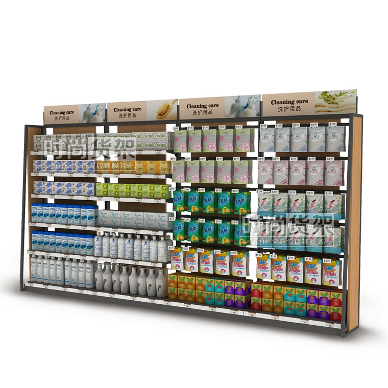 - 產(chǎn)品描述:日用品鋼木貨架是一款適用于便利店和超市日用品區(qū)的便利店貨架