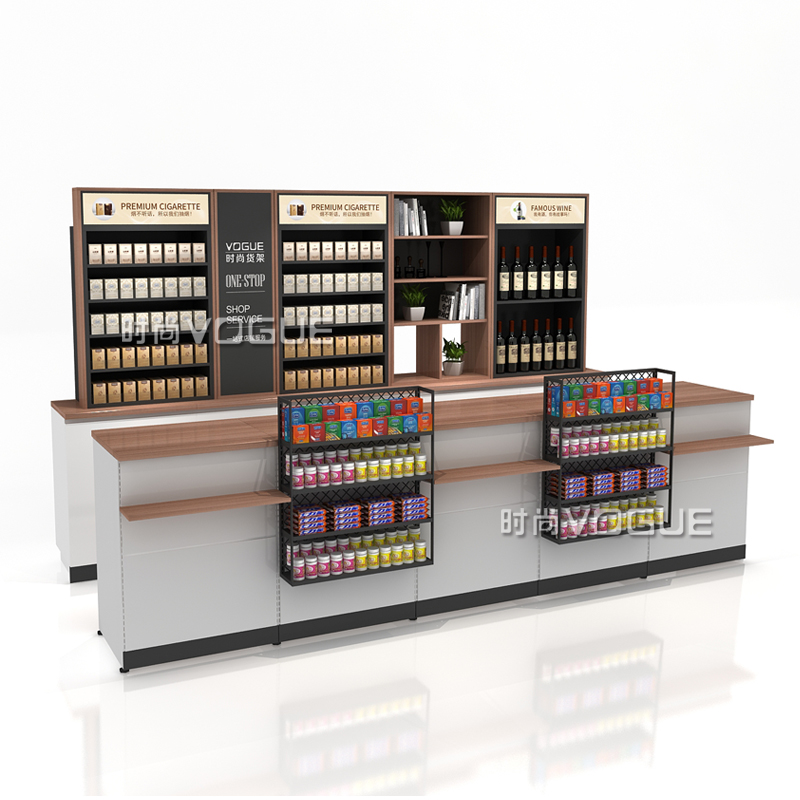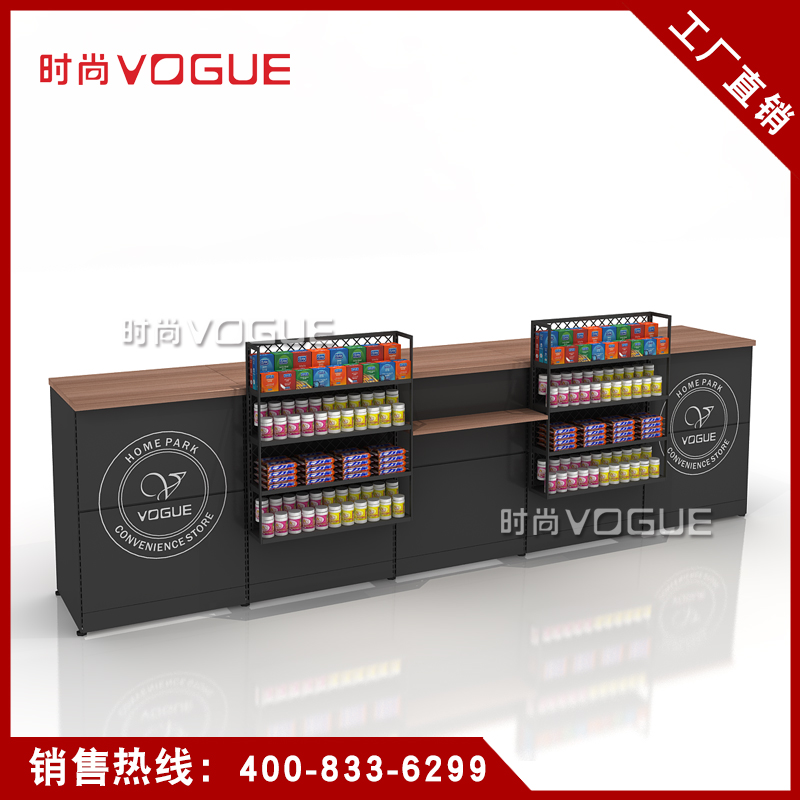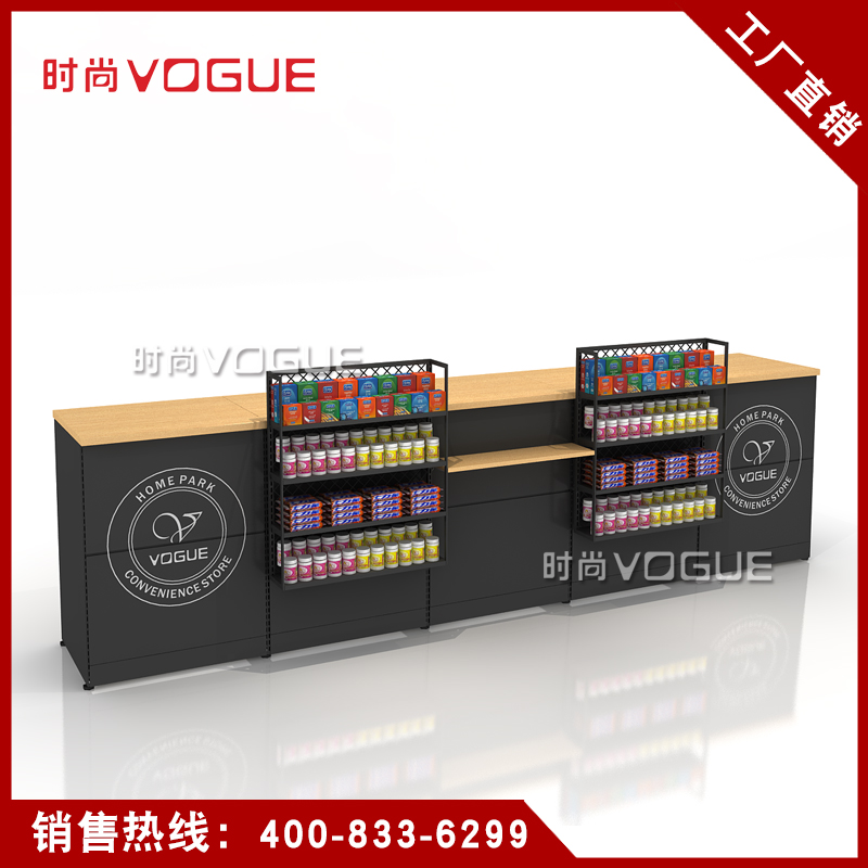 本款便利店收銀臺是時尚貨架為連鎖便利店設(shè)計生產(chǎn)的一款多功能組合式便利店收銀臺,如需了解更多小型便利店收銀臺,請咨詢客服人員!