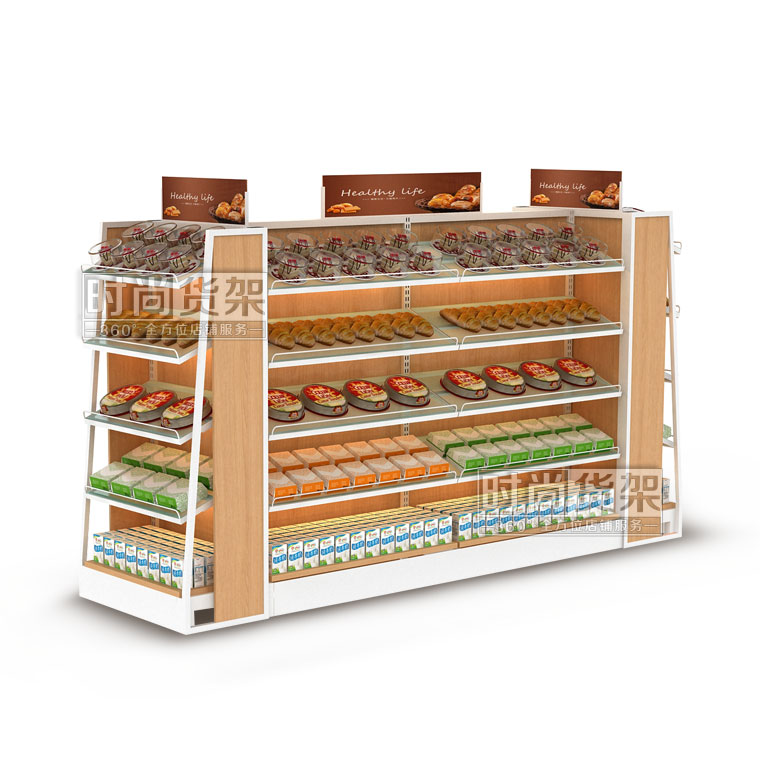 便利店貨架_面包區(qū) (雙面木板帶地柜)