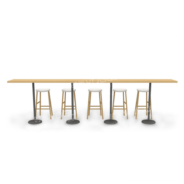 【描述】此款便利店休閑吧臺(tái)桌椅配色清新,色澤明亮,非常有效的提升店鋪形象;吧臺(tái)臺(tái)面采用優(yōu)質(zhì)環(huán)保木材,無甲醛傷害,經(jīng)過多道精密工序,自然的木質(zhì)紋理美觀清新,同時(shí)具有防潮、耐高溫的特點(diǎn),讓使用壽命更久;烤漆剛制立腳,灰色的配色具有時(shí)尚感,工藝精湛,具有耐磨防刮的效果;吧椅線條流暢,根據(jù)人體工程學(xué)原理設(shè)計(jì)了踏腳橫梁,使用起來更為舒適??煞胖糜诒憷甑鹊拇扒?,即美觀通透,也有吸引來往人群入店消費(fèi)的作用。