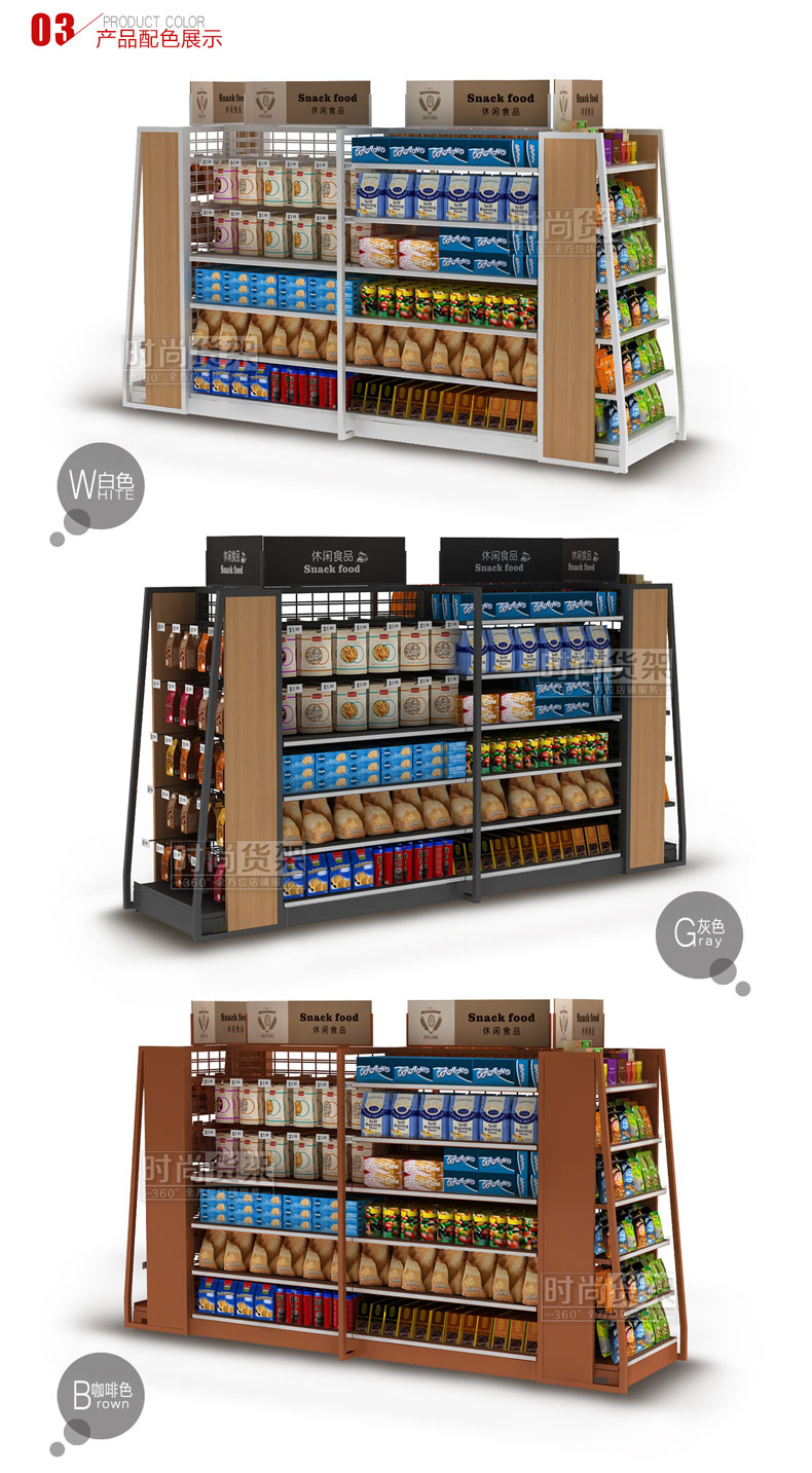 此款超市貨架是深圳貨架廠【時尚貨架】專為超市食品區(qū)域打造的一款通透性更強的網(wǎng)背板零食貨架。更多超市貨架可點擊http://hljzzgx.com/supermarket/spzsq/,如需采購超市貨架,請咨詢客服!