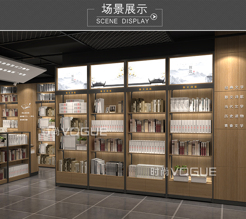 • 產(chǎn)品描述:這是時尚貨架專為書店圖書陳列打造的一款圖書靠墻書架。