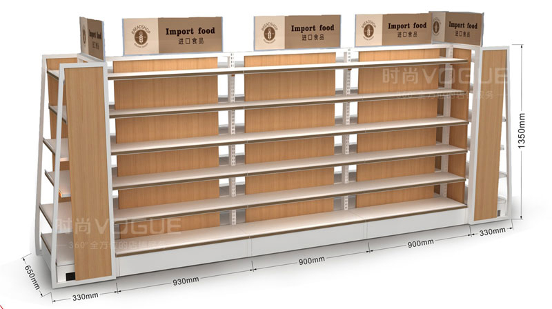 上圖是便利店貨架廠家【時尚貨架】新上市的一款鋼木結(jié)合貨架,可以看到貨架的背板為高密度環(huán)保板,而層板則為冷軋鋼,既能保證承重性也能保證美觀性。這種材質(zhì)的貨架在精品便利店或進口食品店運用較多,更符合高檔店面的形象。