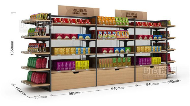 便利店貨架款式介紹:雙面木背板零食貨架