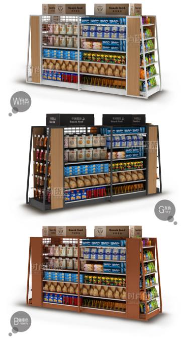 便利店貨架款式圖:這款便利店貨架擁有三種配色,便利店貨架圖中的第一種款式采用了白色的基架+淺色木紋,讓貨架清新小巧,符合所有便利店的裝修風(fēng)格;第二款則采用灰色+淺色木紋的配色,深與淺的碰撞讓這款貨架更顯時(shí)尚,如果你想讓便利店別具一格,就選吧!最后一款則采用了咖啡色+深木紋,貨架整體呈現(xiàn)出咖啡色,非常適合深色裝修風(fēng)格的便利店。