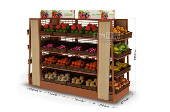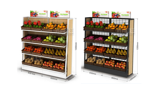 現在市面上可見的超市貨架一般有三種款式:單面果蔬架、雙面果蔬架和果蔬展示框。不同的款式有不同的展示效果和適用范圍,具體選擇時可以根據實際情況做考慮。比如要靠墻擺放就選單面架;擺在中間就選雙面架;堆頭展示就選果蔬展框。