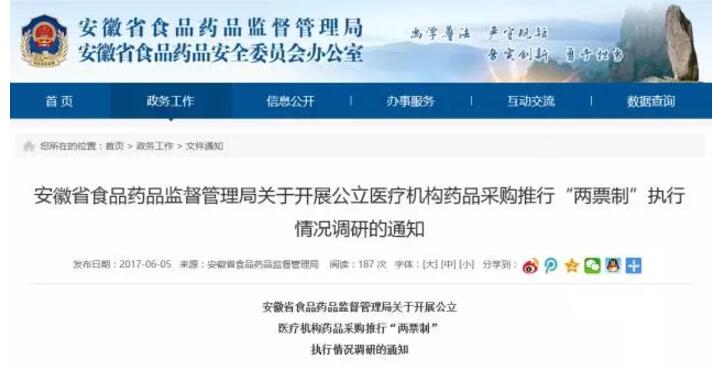 通知顯示,此次調研共計一個月零五天,即從公示的6月5日起至7月10日止。應該說,此次安徽就兩票制執(zhí)行情況的調研,是官方正視兩票制執(zhí)行問題的良好發(fā)端。鑒于安徽省是醫(yī)改試點省份,其調研的情況以及征集的建議,很有可能會被國家采納進而推廣全國。果真如此,兩票制或有重大調整,也就只是時間的事兒了。