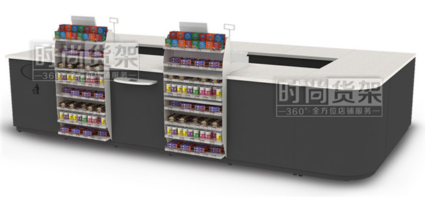 便利店收銀區(qū)是顧客離開前最后停留的地方,只要好好利用就能幫助店面提升營業(yè)額。這款便利店收銀臺(tái)是組合形式,由主柜、付柜、轉(zhuǎn)角柜、后柜組合而成,前面還配置了小前架和置物板,可以用來陳列一些小商品,帶動(dòng)顧客產(chǎn)生沖動(dòng)型消費(fèi)行為。
