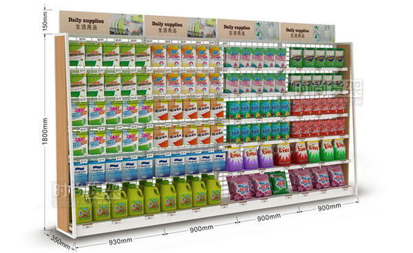 一般居民區(qū)附近的便利店都會銷售日用品,為顧客生活提供更多便利。上圖是時尚貨架最新推出的便利店日用品貨架,整體采用了掛鉤和層板相結(jié)合的模式,適宜懸掛陳列袋裝商品,滿足多種陳列需求。