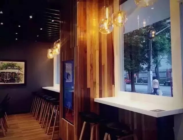 櫥窗前的原木色墻面和白色桌面,在暖黃色的燈光下透露出溫馨,讓顧客眼前仿佛不再是便利店而是一間咖啡店,使人忍不住想進店看看里面都有些什么。