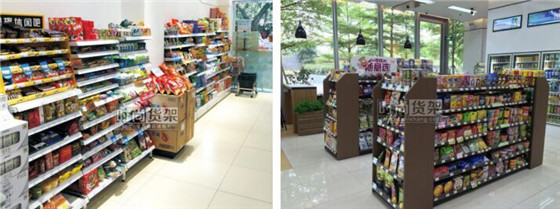 鋼木貨架美觀高檔,陳列效果佳,但是價格較高,更適宜精品便利店、品牌便利店使用。(鋼木食品貨架詳情點擊:www.hljzzgx.com/store/dshj/114.html)