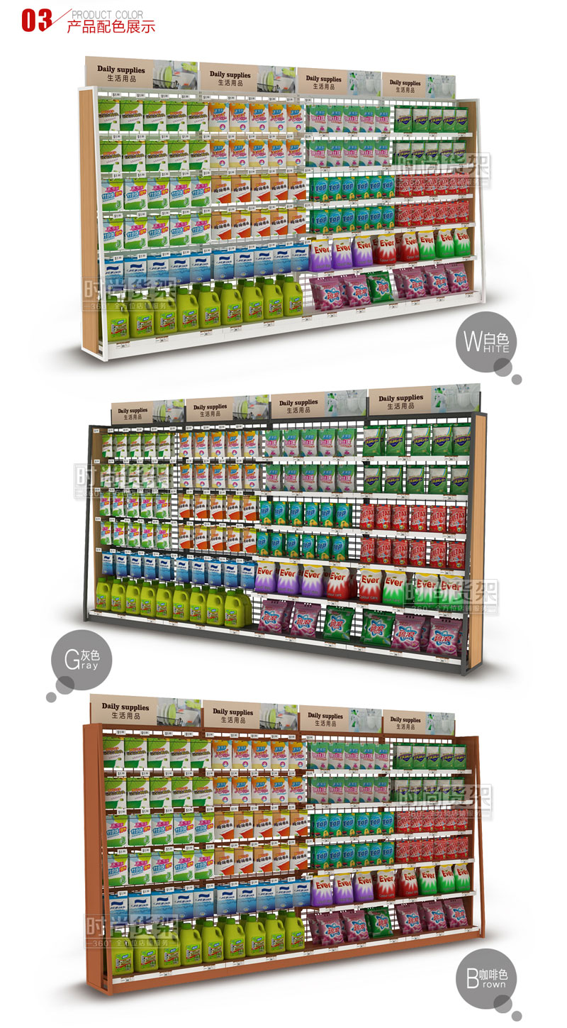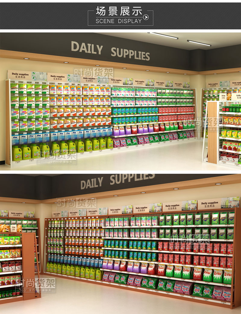 超市生活用品貨架是一款適用于超市生活用品區(qū)的單面靠墻貨架,想要了其他超市貨架,請(qǐng)咨詢時(shí)尚貨架客服。